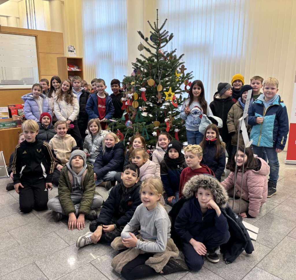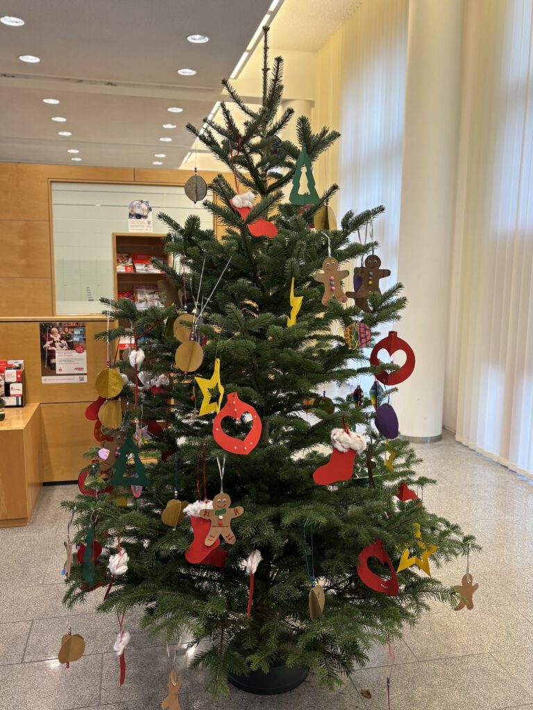 Am Mittwoch war es dann soweit und die Kinder schmückten die wunderschöne Tanne im Eingangsbereich. Nun sieht sie noch schöner aus und kann die Kunden erfreuen.